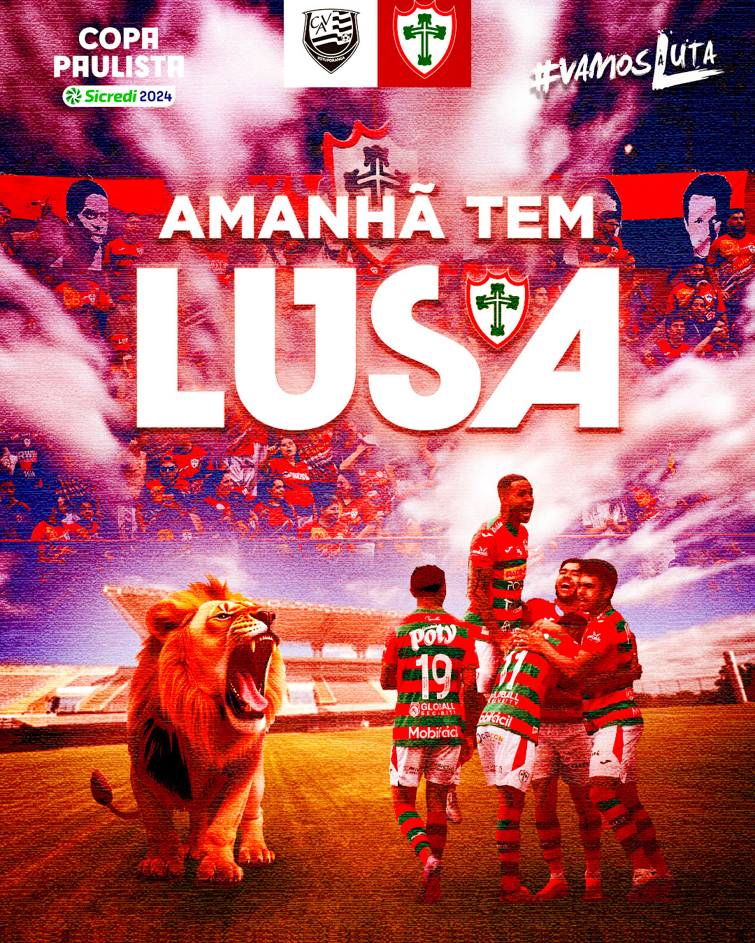 Criei a série de artes "Amanhã Tem Lusa" para a Portuguesa durante a Copa Paulista 2024. A ideia era capturar toda a vibe pré-jogo e reforçar as cores e a tradição do clube. As artes foram publicadas nas redes sociais, criando uma emoção pré-jogo para os torcedores. ------------------------------------------ ⠀ I designed the "Amanhã Tem Lusa" series for Portuguesa during the 2024 Copa Paulista. The goal was to capture the pre-match vibe and highlight the club’s colors and tradition. These pieces were posted on social media, creating pre-game excitement for the fans.